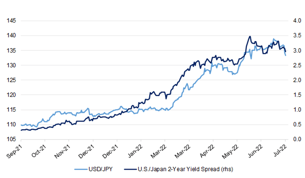 Fig. 1: USD/JPY vs. U.S./Japan 2-Year Yield