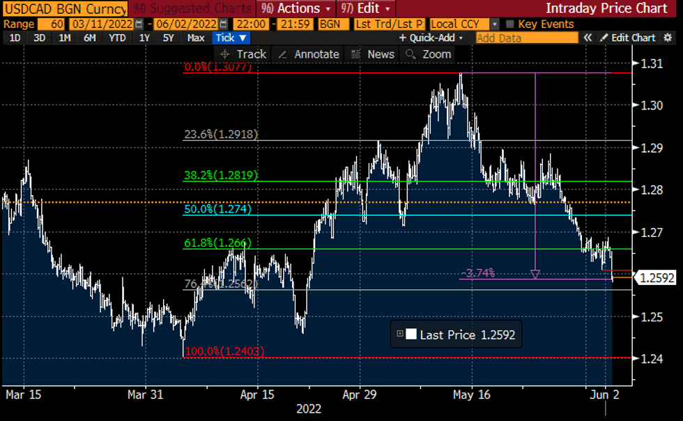 - It sees the Can-US yield differentials narrow notably on the day to -5bps for the 2Y and -0.5bp for the 10Y, both towards the middle of 3mth ranges.
