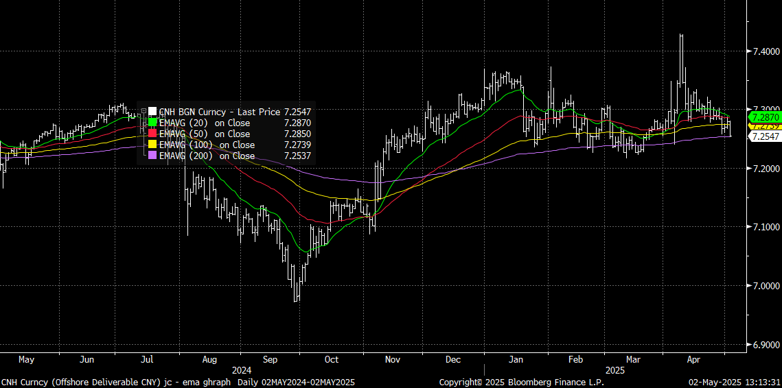 USD/CNH sits just up from session lows, the pair last 7.2550 (earlier lows were at 7.2529). We are around 0.30% stronger in CNH terms for the session so far. This is fresh lows for the pair back to April 4. Earlier headlines that China is considering a US request for trade talks (from the China Commerce Ministry) has buoyed optimism that the two sides could at least be closer to talks aimed at reducing trade tensions/lowering tariff levels.