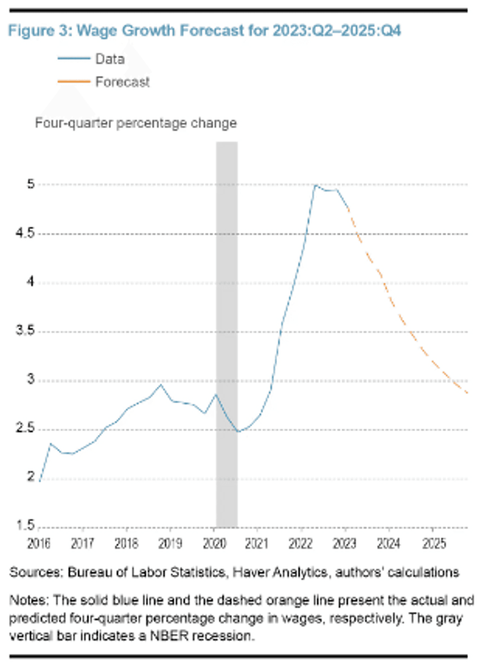 - Should inflation remain fixed at 4.1%, the annualized rate in 1Q23, wage growth would barely decline from 4.7% Y/Y in 1Q23 to 4.6% Y/Y 4Q25.