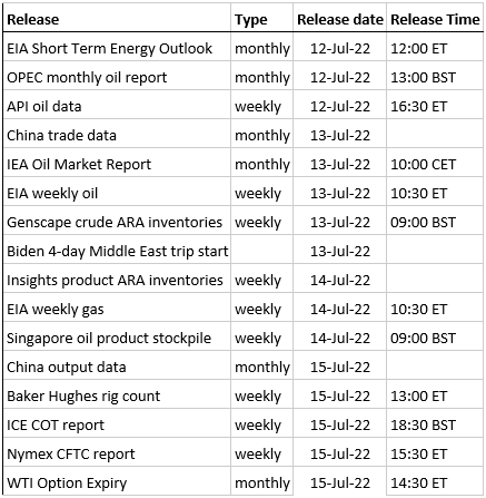 - Later this week will see the release of the monthly market reports from EIA and OPEC on Tuesday and IEA Wednesday. The reports will provide forecasts for the coming months with high uncertainty over both supply and demand.