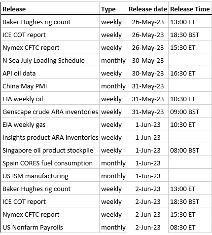 - The latest Baker Hughes rig count data is due for release at 13:00ET. The data last week showed gas rigs numbers steady at the lowest since April 2022 at 141 after the big fall the previous week. The oil rig count followed the decline last week down to 575 to the lowest since June 2022.