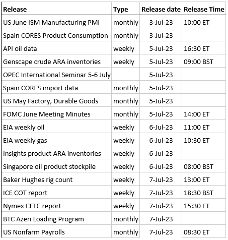 - The US holiday tomorrow will delay the release of the oil inventory data later this week.