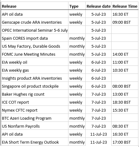 - The latest Genscape European ARA crude inventories will be released today at 09:00BST. Stocks have built in recent weeks up to 60.93mbbls last week and now above the five year average of 58.17mbbls for this time of year.