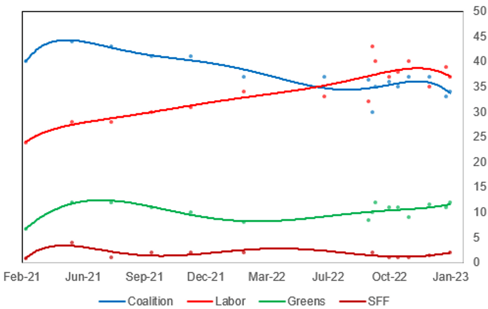 Source: Resolve Strategic, Essential, Roy Morgan, YouGov, Newspoll, Freshwater Strategy, MNI