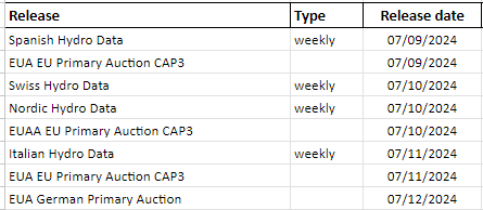 • The next weekly EU EUA CAP3 auction will clear today 11:00am CET. The last auction resulted at an achieved price €70/ton CO2e at a 1.62 cover ratio on 8 July.