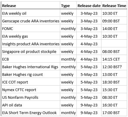 - The latest Genscape European ARA crude inventories will be released today at 09:00GMT. A decline last week took stocks below the five year range to 52.78mbbls. The average for this time of year is 57.53mbbls.