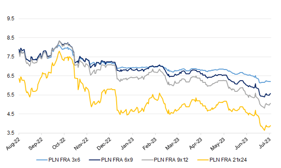 EUR/PLN has lost some altitude, while the zloty tops the EMEA pile at typing, despite the absence of notable local catalysts. The Fed's monetary policy decision provides the main risk event today. The pair is probing the water below 4.42 and is approaching key support from 4.4138, which limited losses on Jul 4.